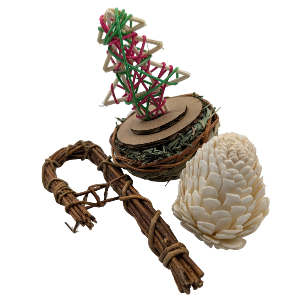 Materials: sisal, vine, orchard grass, seagrass, sola, dried willow, cardboard